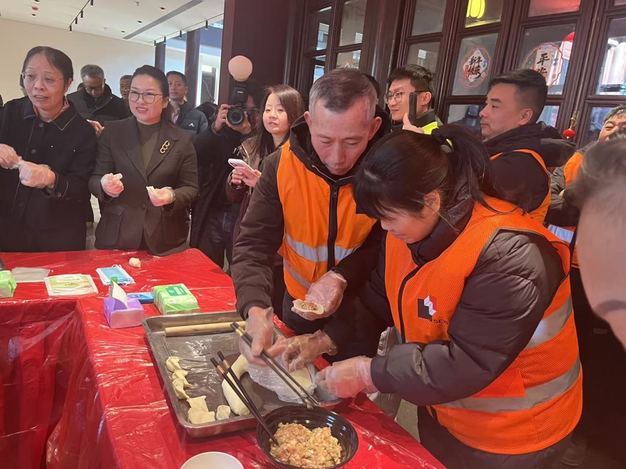 封顶当日,项目部开展了党建联建活动,共研“如何用智能建造开启好房子时代”课题,并组织了新春慰问活动,向坚守岗位的一线建设者送上节日关怀与新春祝福。中午时分,建设者们参与包饺子、写对联等互动活动。当热气腾腾的饺子出锅时,瞬间驱散了冬日的严寒,工友们在大快朵颐的同时,也许下新年心愿。